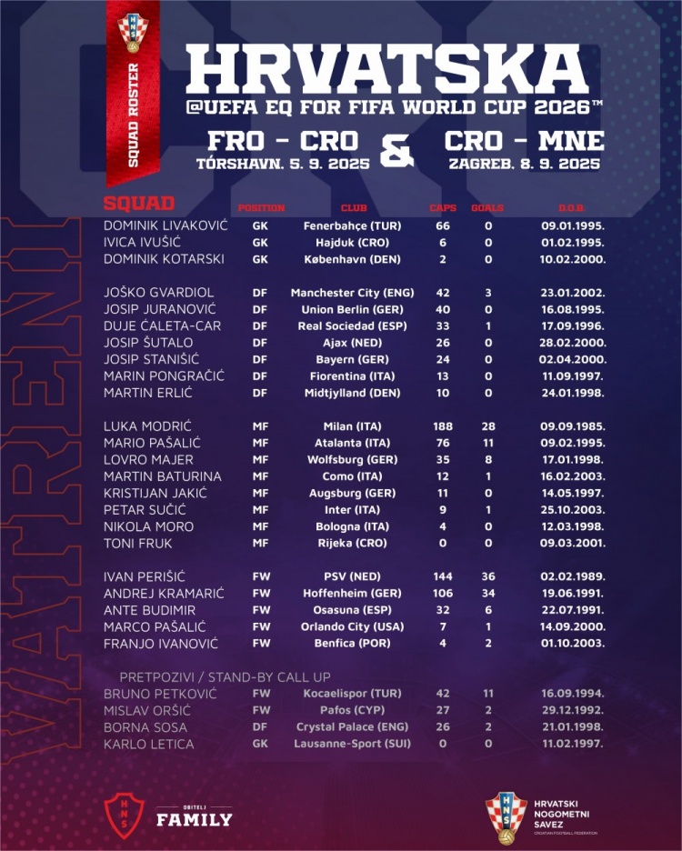 8月18日讯 克罗地亚国家队公布了9月份世预赛名单,莫德里奇领衔,格瓦迪奥尔、斯坦尼西奇、佩里西奇在列,克罗地亚将在9月世预赛中对阵法罗群岛和黑山。